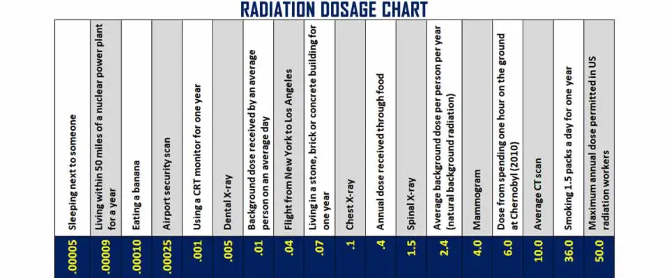 Yes, with rare exceptions x-rays are a necessary component of any comprehensive and useful dental examination, the reason being that there are locations between the and in the bone that the human eye simply can’t see. While radiation should be avoided when possible, the amount of radiation used in a dental setting is minute and inconsequential compared to those performed in a Medical Doctor’s office. The chart below shows the relative intensity of radiation of dental radiography compared to some daily activities.